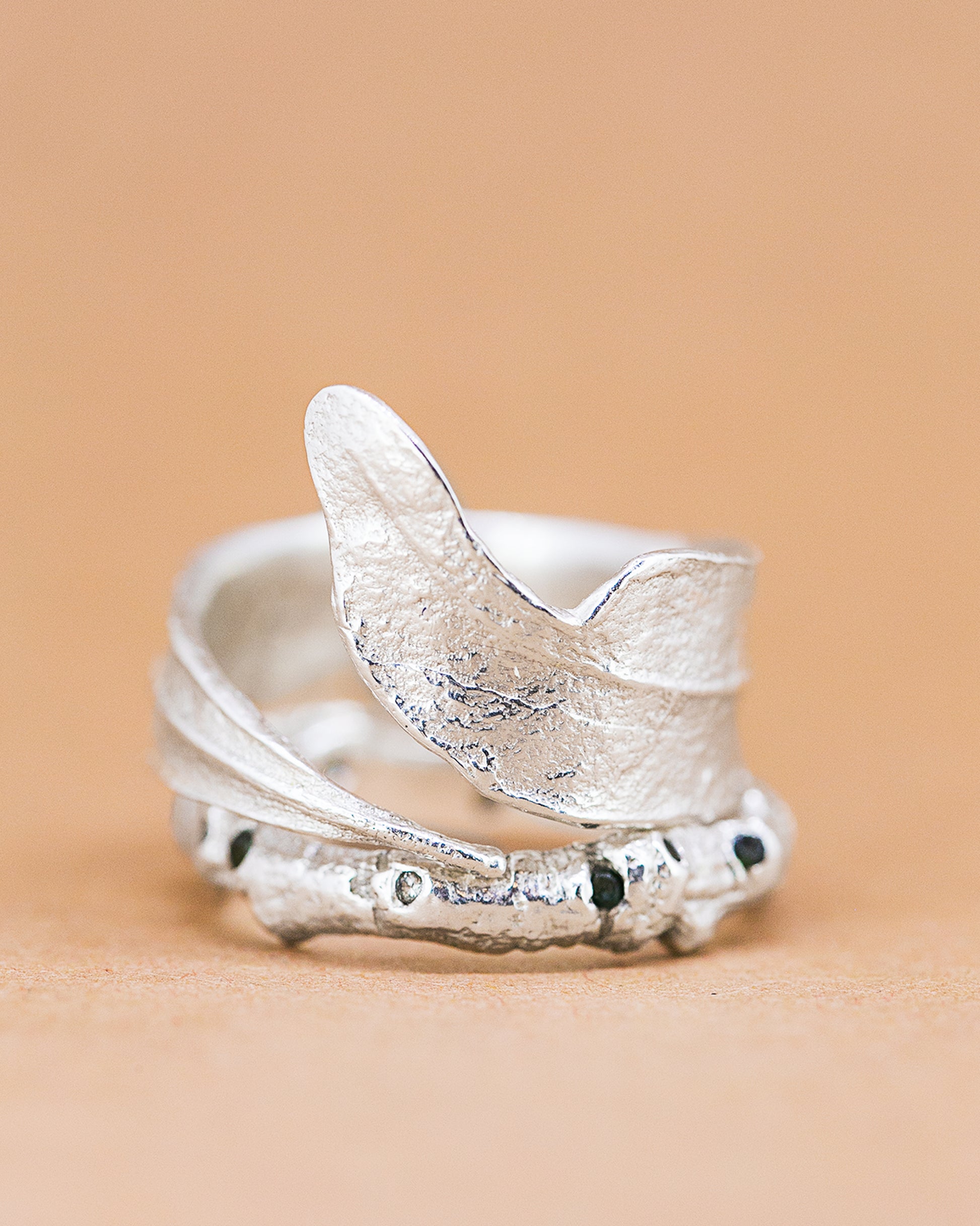 This ring is an ode to the olive tree. On a trip to the Mediterranean, my ancestral home, I found this leaf with its unusual shape and instantly envisioned it as a ring. It holds deep meaning for me and hope you will feel the warmth and significance it carries.